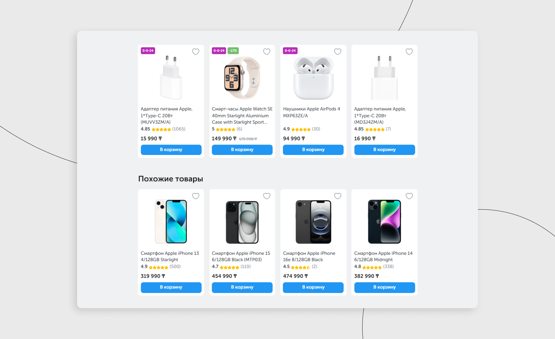 - «Похожие товары» — помогает удержать клиента, если выбранного товара нет в наличии.