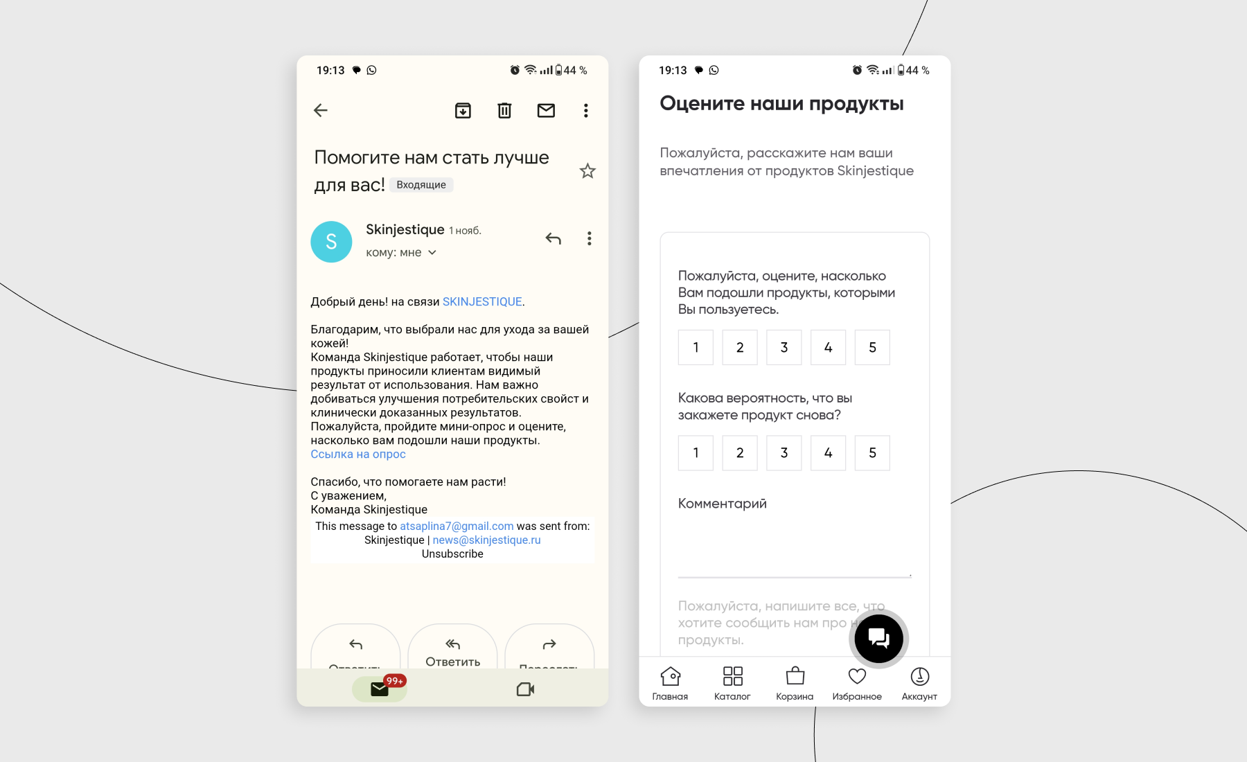 Магазин собирает обратную связь с помощью рассылок с модулем оценки Net Promoter Score. Это помогает удерживать и возвращать клиентов.