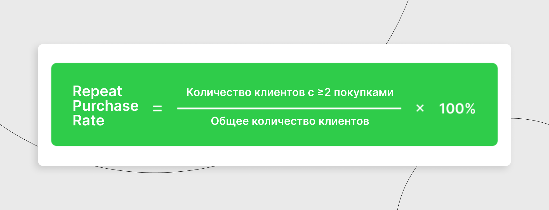 Показывает, какой процент клиентов возвращается за повторной покупкой за определенный период.