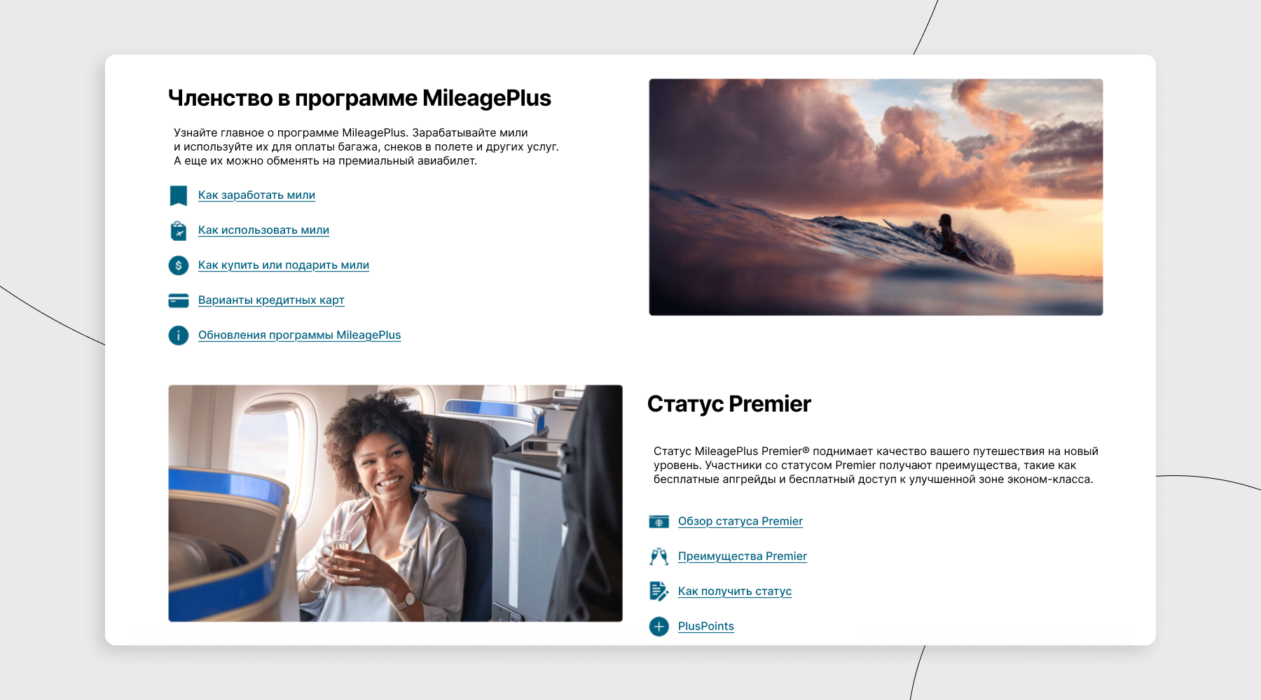 Программа лояльности United Airlines, ориентированная на постоянных путешественников, которые летают по США и по всему миру.