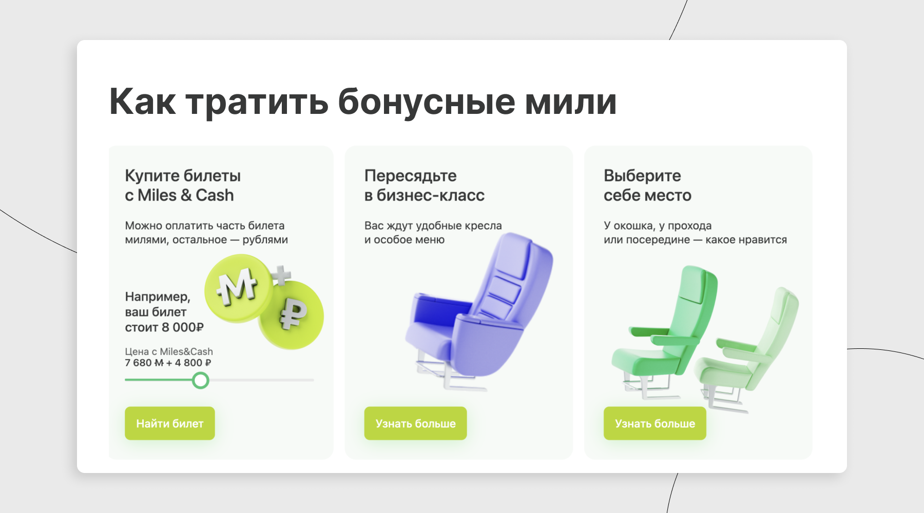 - Накопление миль. За перелеты и покупки у партнеров. Чем чаще путешествуешь, тем больше возможностей сэкономить или получить дополнительные услуги.