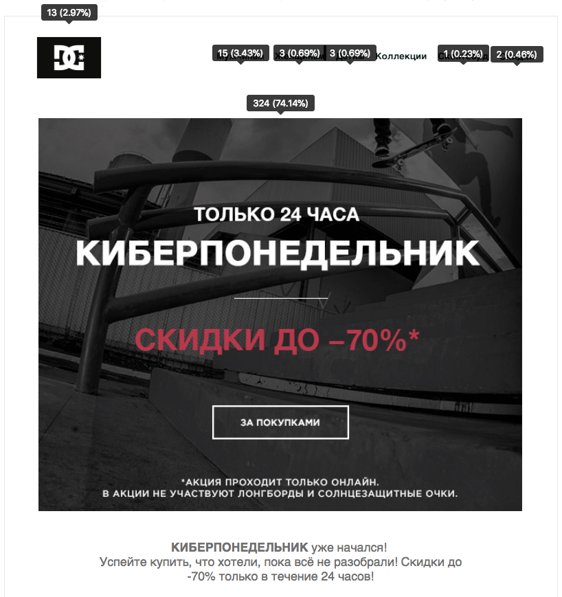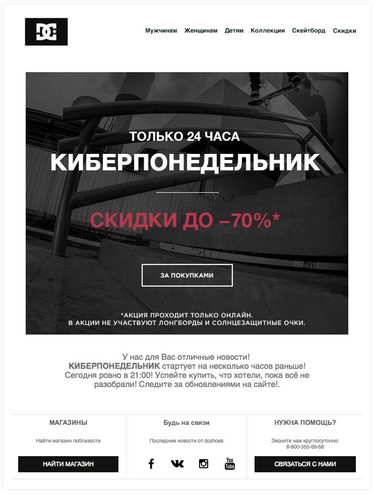 Пример первой анонсирующей рассылки DC Shoes