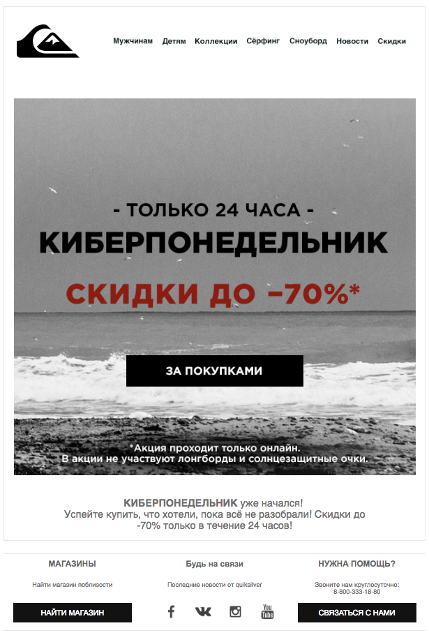 Пример лендинга акции на Quiksilver