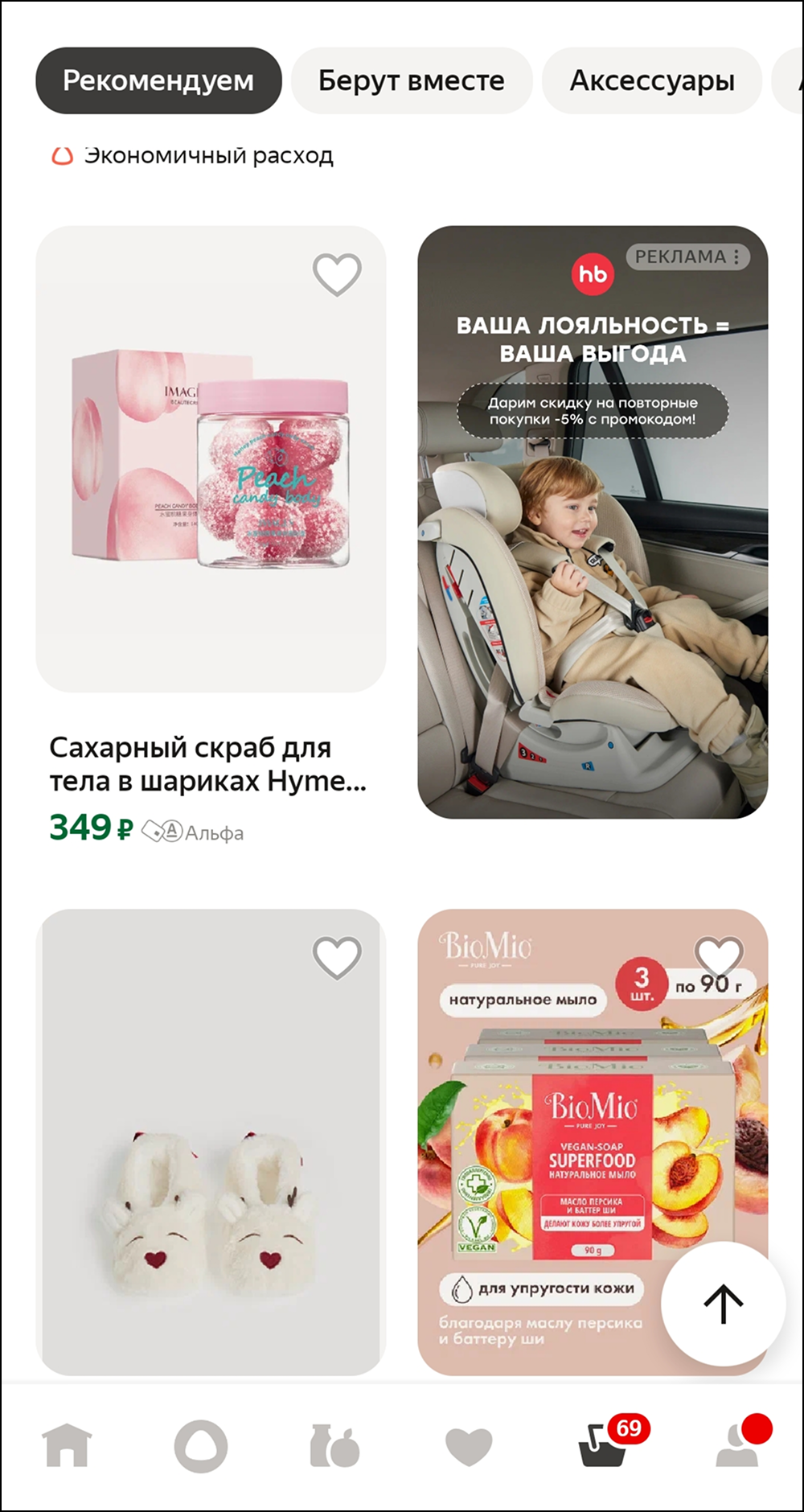 - динамический подбор товаров по интересам.