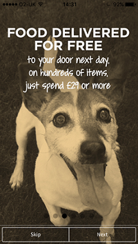 Магазин выбрал Monster Pet Supplies довольно интересный путь — заключил договор с известным производителем кормов, получил деньги на выгодную акцию «приведи друга и вы оба получите корма на 5 фунтов». Взамен — брендирование приложения (но без перегибов, вроде «только продукция Purina в каталоге). В остальном — вполне привычный всем магазин-приложение.
